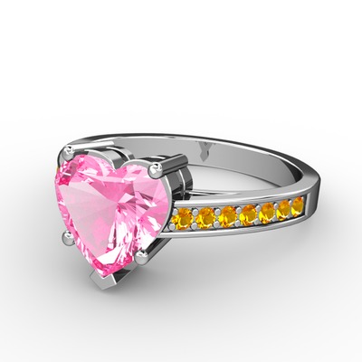 Pembe kuvars ve sitrin 18 ayar beyaz altın yüzük