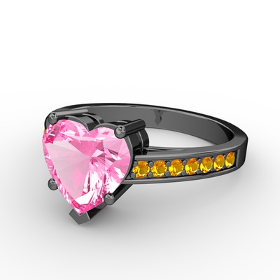Pembe kuvars ve sitrin 925 ayar siyah rodyum kaplama gümüş yüzük