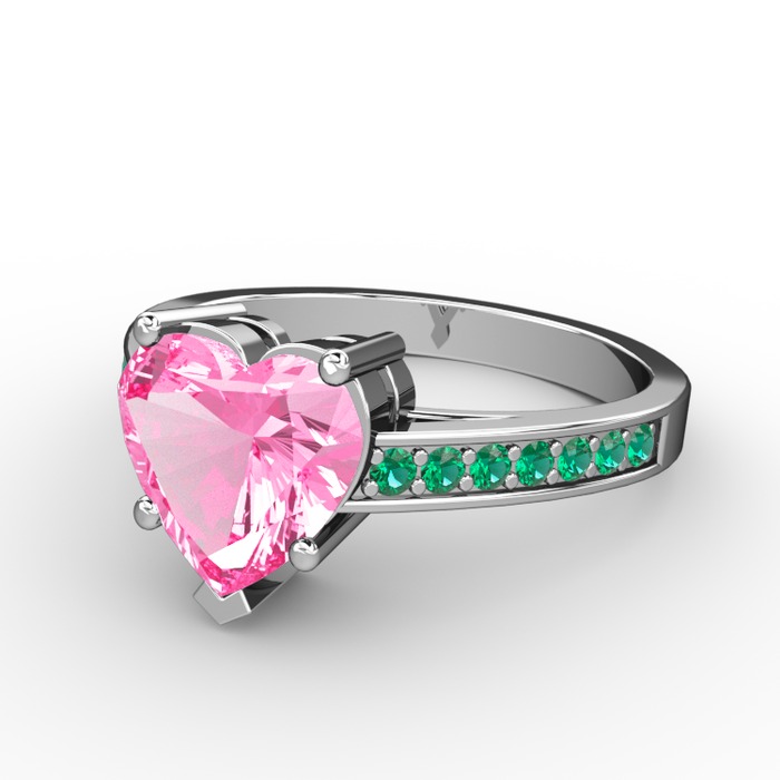 Pembe kuvars ve yeşil kuvars 8 ayar beyaz altın yüzük