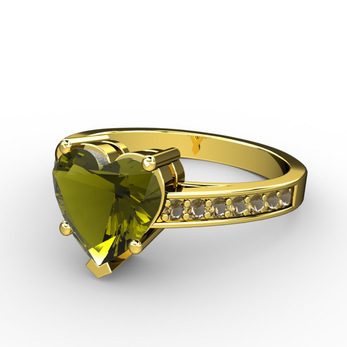 Peridot ve dumanlı kuvars 18 ayar altın yüzük