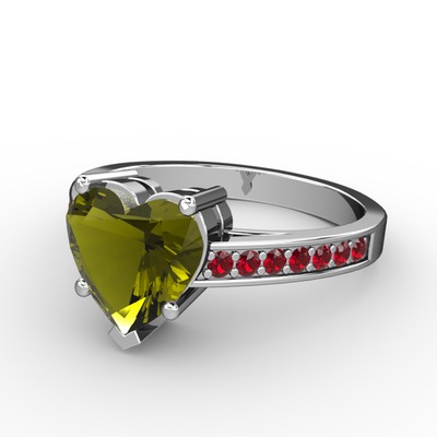 Peridot ve garnet 14 ayar beyaz altın yüzük
