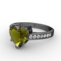 Peridot ve pırlanta 925 ayar siyah rodyum kaplama gümüş yüzük (0.21 karat)