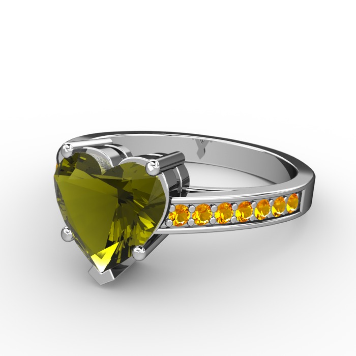 Peridot ve sitrin 14 ayar beyaz altın yüzük