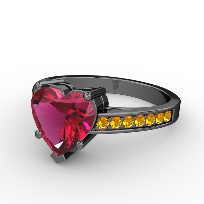 Rodolit garnet ve sitrin 925 ayar siyah rodyum kaplama gümüş yüzük