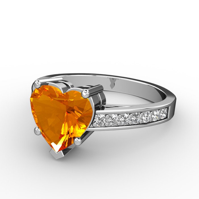 Sitrin ve pırlanta 18 ayar beyaz altın yüzük (0.21 karat)