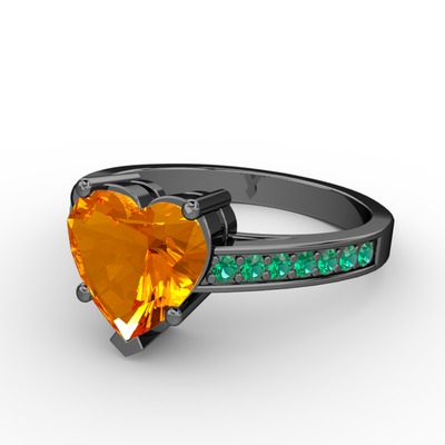 Sitrin ve yeşil kuvars 925 ayar siyah rodyum kaplama gümüş yüzük