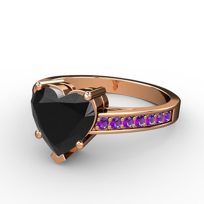 Siyah zirkon ve ametist 8 ayar rose altın yüzük