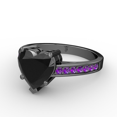 Siyah zirkon ve ametist 925 ayar siyah rodyum kaplama gümüş yüzük