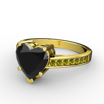 Siyah zirkon ve peridot 14 ayar altın yüzük
