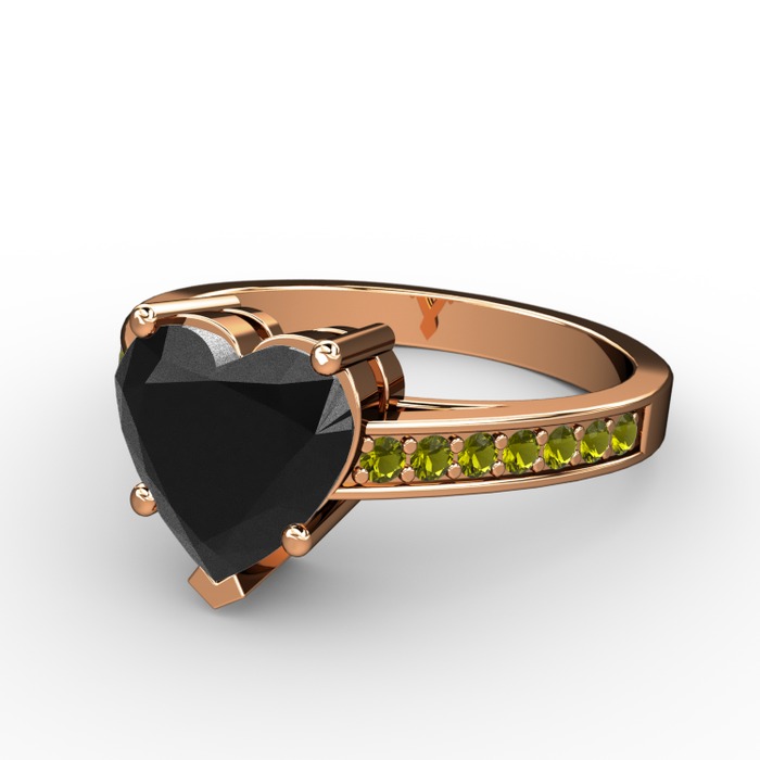 Siyah zirkon ve peridot 18 ayar rose altın yüzük