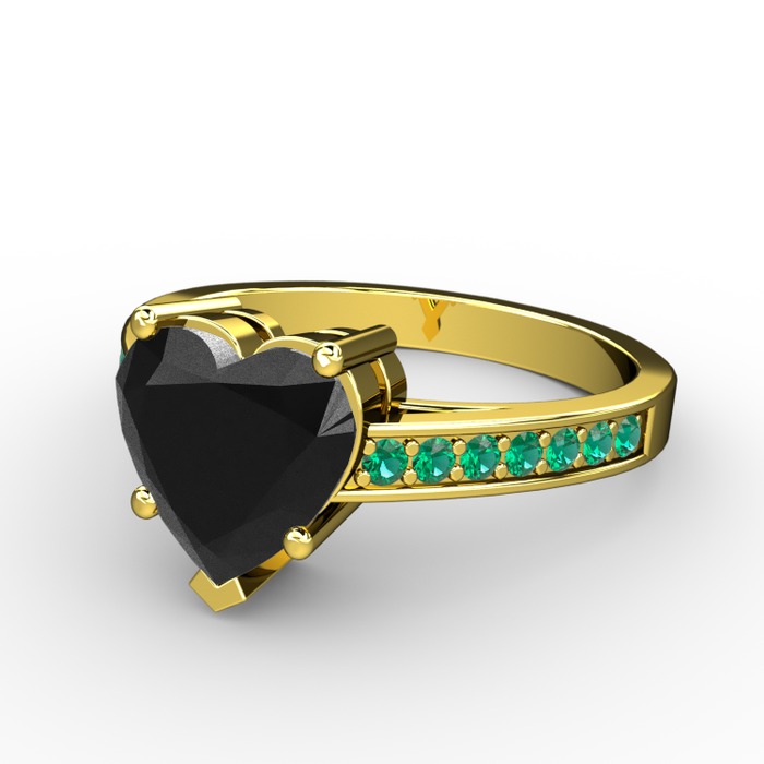 Siyah zirkon ve yeşil kuvars 8 ayar altın yüzük