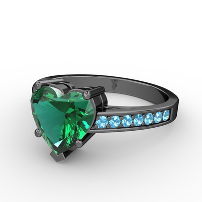 Yeşil kuvars ve akuamarin 925 ayar siyah rodyum kaplama gümüş yüzük
