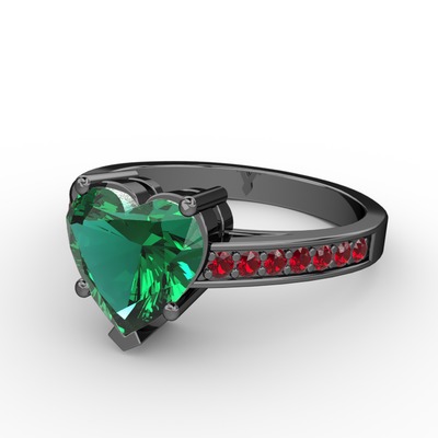 Yeşil kuvars ve garnet 925 ayar siyah rodyum kaplama gümüş yüzük
