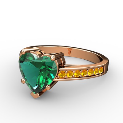 Yeşil kuvars ve sitrin 14 ayar rose altın yüzük