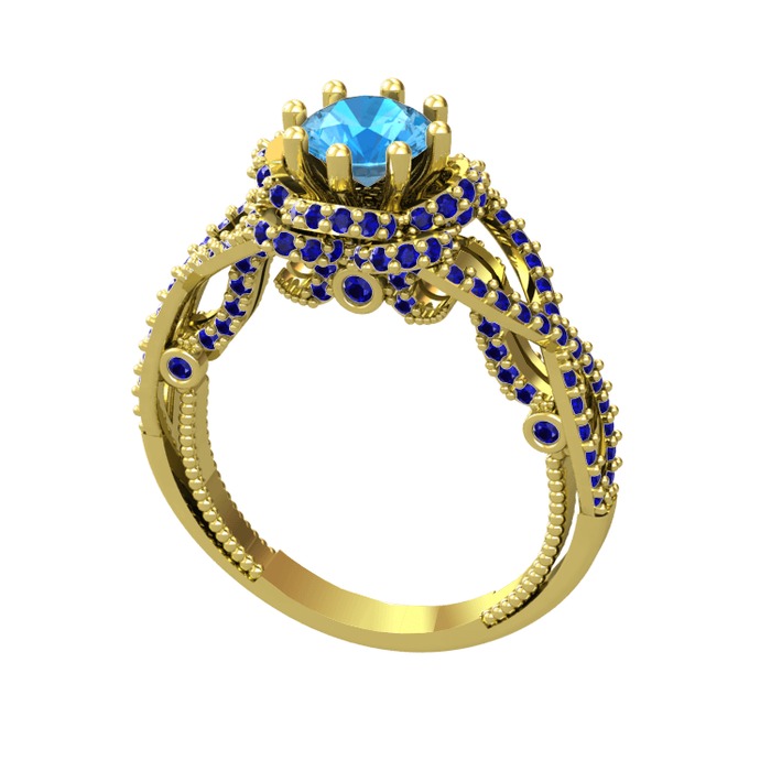 Akuamarin ve lab safir 8 ayar altın yüzük