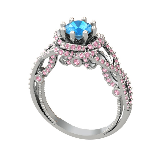 Akuamarin ve pembe kuvars 14 ayar beyaz altın yüzük