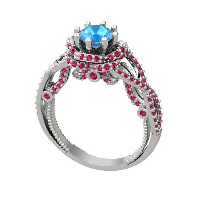 Akuamarin ve rodolit garnet 14 ayar beyaz altın yüzük