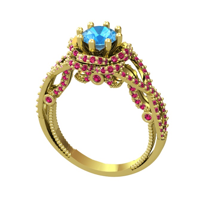 Akuamarin ve rodolit garnet 925 ayar altın kaplama gümüş yüzük