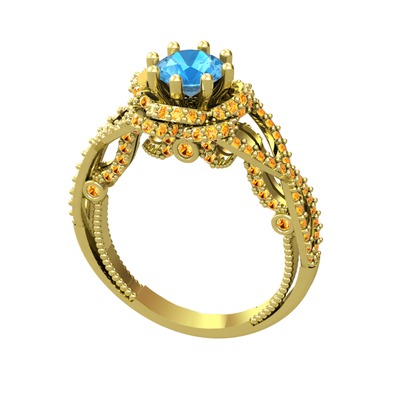 Akuamarin ve sitrin 18 ayar altın yüzük