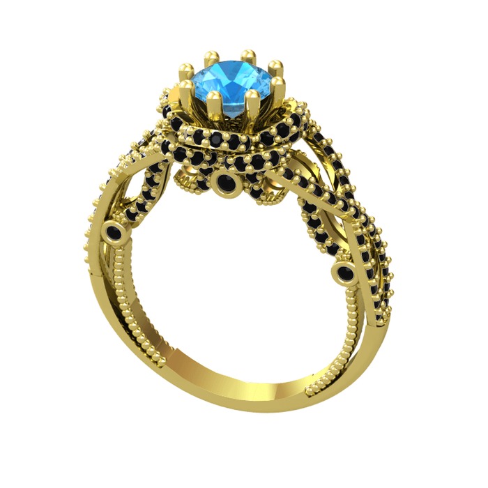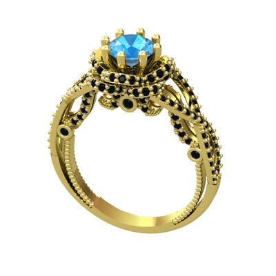 Akuamarin ve siyah zirkon 925 ayar altın kaplama gümüş yüzük