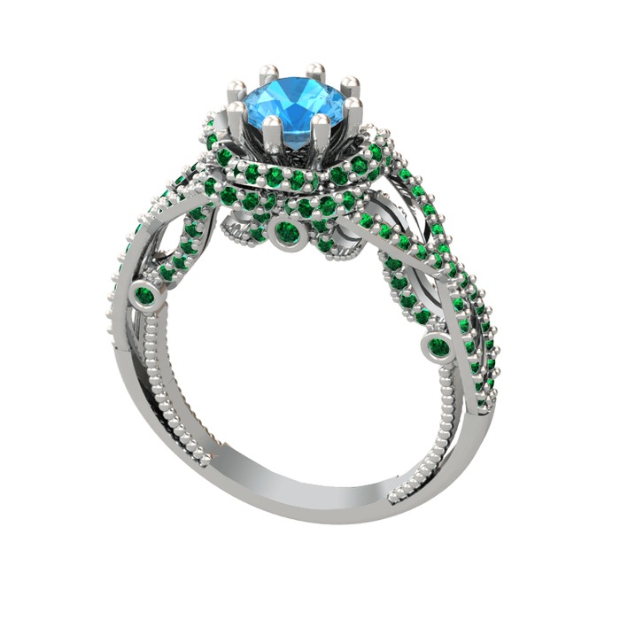 Akuamarin ve yeşil kuvars 14 ayar beyaz altın yüzük