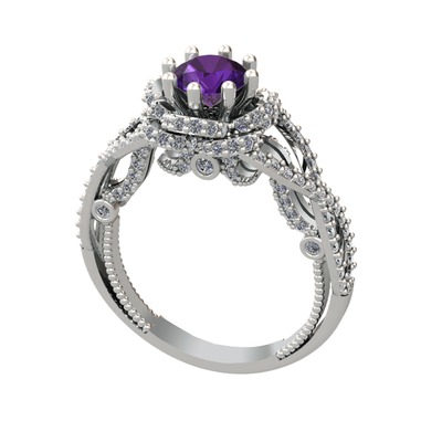 Ametist ve beyaz zirkon 14 ayar beyaz altın yüzük