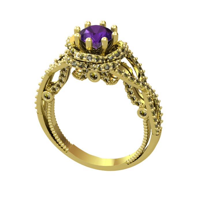 Ametist ve peridot 18 ayar altın yüzük