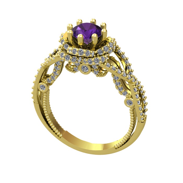 Ametist ve pırlanta 18 ayar altın yüzük (2.25 karat)