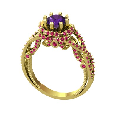 Ametist ve rodolit garnet 14 ayar altın yüzük