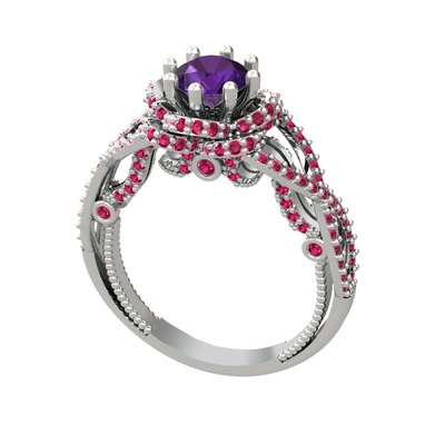 Ametist ve rodolit garnet 14 ayar beyaz altın yüzük
