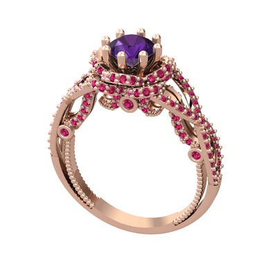 Ametist ve rodolit garnet 18 ayar rose altın yüzük