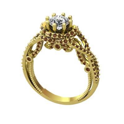 Beyaz zirkon ve dumanlı kuvars 18 ayar altın yüzük