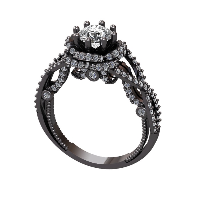 Beyaz zirkon 925 ayar siyah rodyum kaplama gümüş yüzük