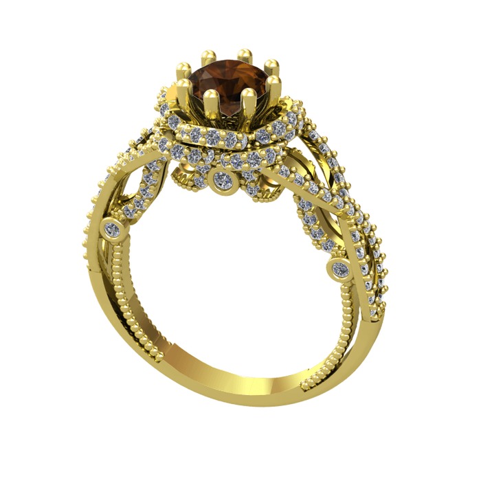 Dumanlı kuvars ve beyaz zirkon 925 ayar altın kaplama gümüş yüzük