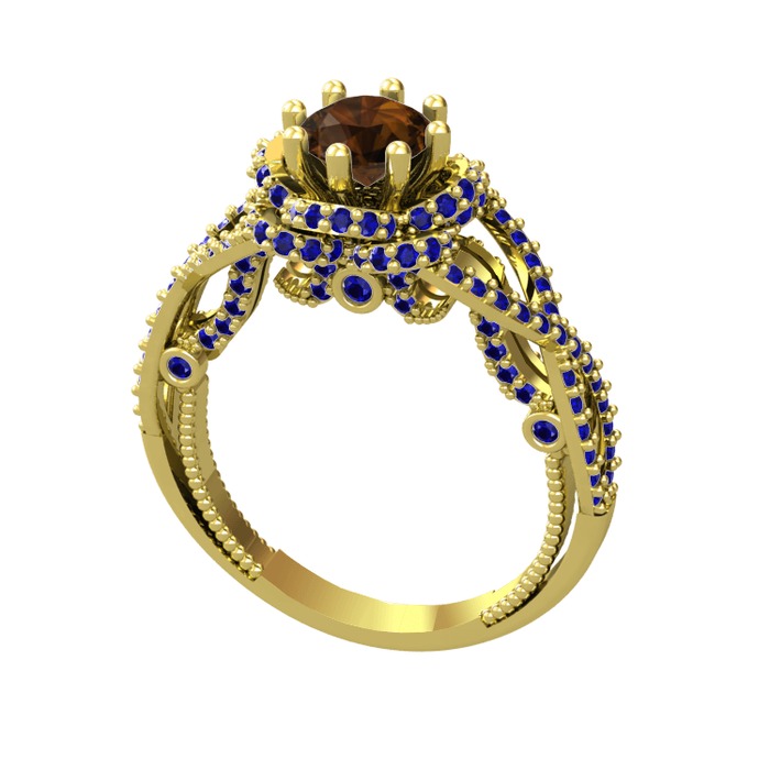 Dumanlı kuvars ve lab safir 8 ayar altın yüzük