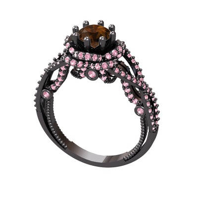 Dumanlı kuvars ve pembe kuvars 925 ayar siyah rodyum kaplama gümüş yüzük