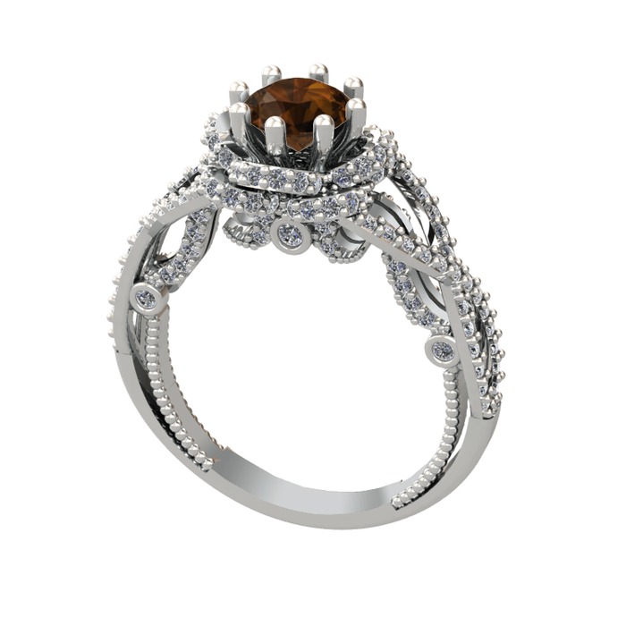 Dumanlı kuvars ve pırlanta 925 ayar gümüş yüzük (2.25 karat)