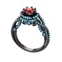 Garnet ve akuamarin 925 ayar siyah rodyum kaplama gümüş yüzük