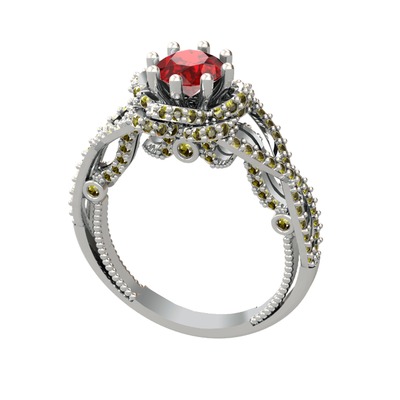 Garnet ve peridot 14 ayar beyaz altın yüzük
