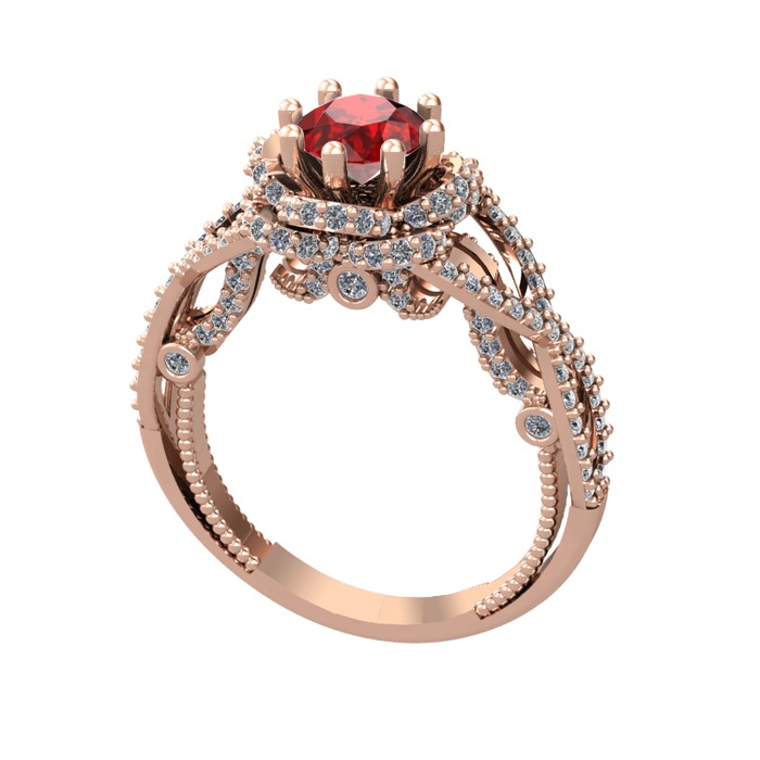 Garnet ve pırlanta 18 ayar rose altın yüzük (2.25 karat)