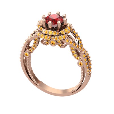 Garnet ve sitrin 14 ayar rose altın yüzük