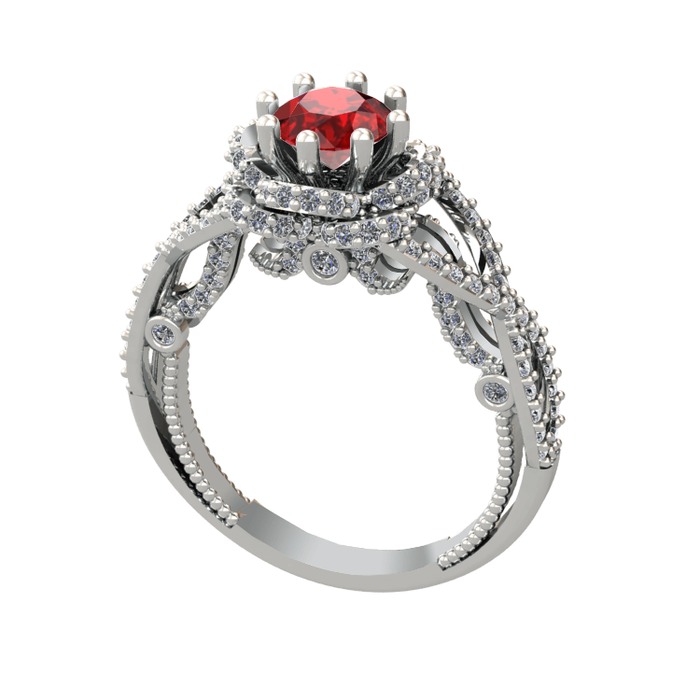 Garnet ve swarovski 8 ayar beyaz altın yüzük