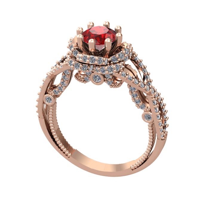 Garnet ve swarovski 925 ayar rose altın kaplama gümüş yüzük