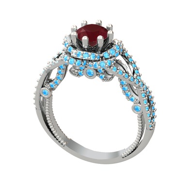 Kök yakut ve akuamarin 925 ayar gümüş yüzük
