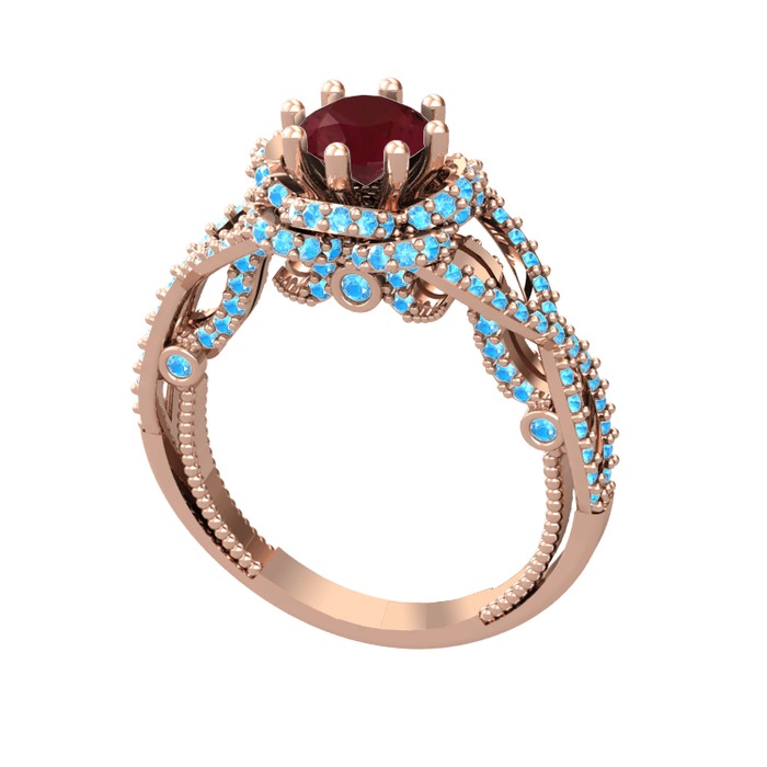 Kök yakut ve akuamarin 925 ayar rose altın kaplama gümüş yüzük