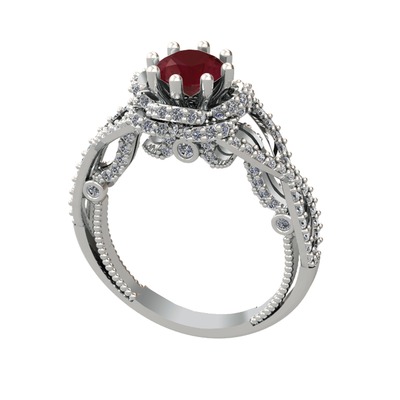 Kök yakut ve beyaz zirkon 14 ayar beyaz altın yüzük