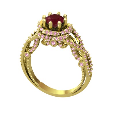 Kök yakut ve pembe kuvars 18 ayar altın yüzük