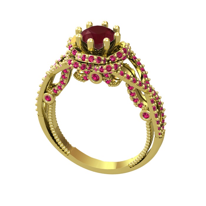 Kök yakut ve rodolit garnet 14 ayar altın yüzük