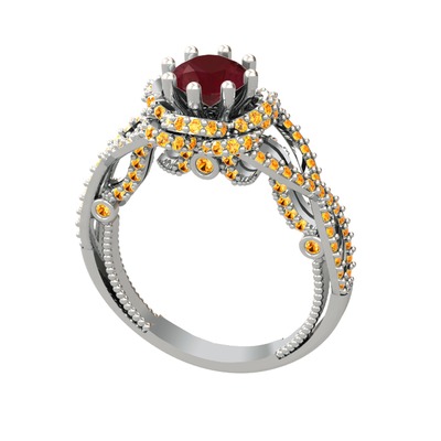 Kök yakut ve sitrin 18 ayar beyaz altın yüzük
