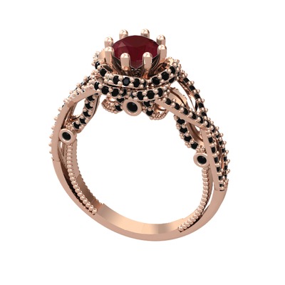 Kök yakut ve siyah zirkon 925 ayar rose altın kaplama gümüş yüzük